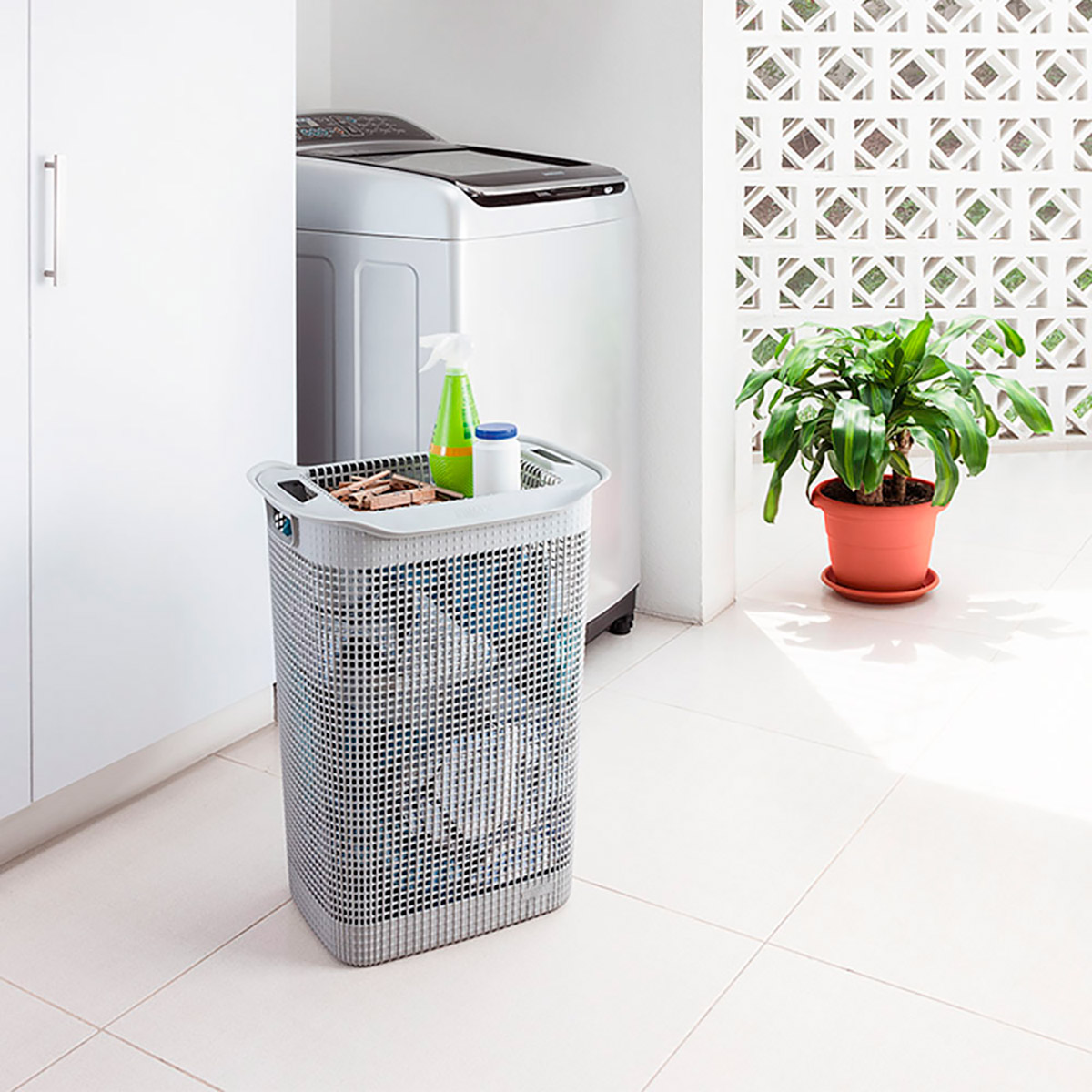 | Características | Cesta para Ropa Linum con tejido imitación lino y textura mate. Tapa con espacio para organizar accesorios o prendas pequeñas. Manijas ergonómicas y capacidad de 51 litros. Los colores de vanguardia que van con el estilo de tu hogar. |